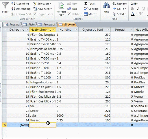 zbir svih vrijednosti kolone