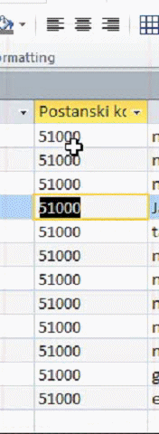 Rad sa tabelama i upitima omogućava uređenje ovih objekata po želji korisnika. Pozicija podataka u koloni može biti:
