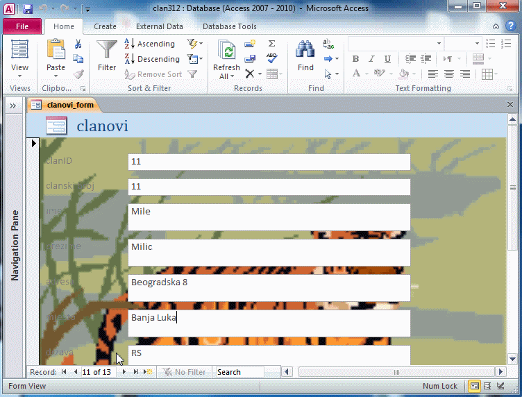 Brisanje se može izvsti izborom zapisa /SELECT/ i pritiskom na DEL dugme.