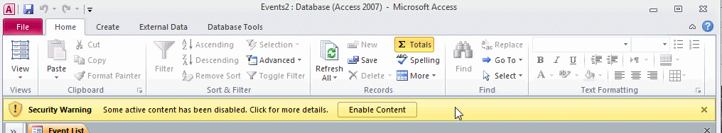 Ovo upozorenje će se javljati svaki put kada otvorite neku bazu podataka. Služi kao osiguranje bezbjednosti kompjutera. Ova opcije se isključuje na sljedeći način: