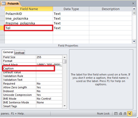 Kreiranje obrasca bez natpisa polja /WITHOUT LABEL - NO CAPTION/
