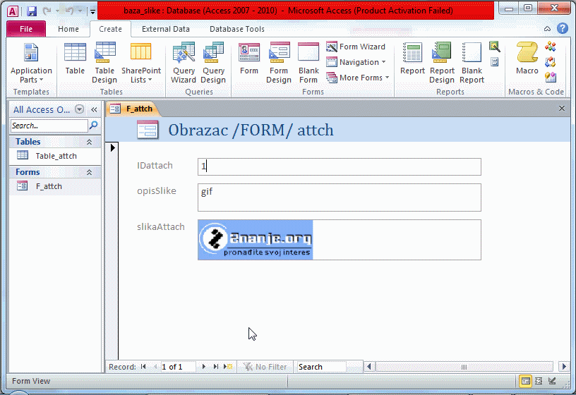 Dodavanje slika - ATTACHMENT - u obrazac 3