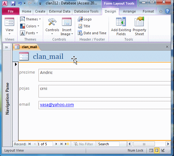 - FORM VIEW, Prikaz FORM – pregledavanje, ažuriranje i unošenje novih zapisa.