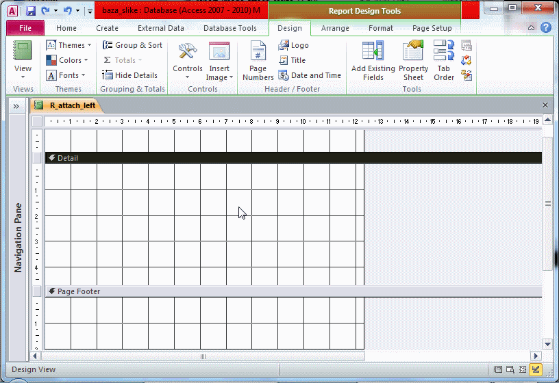 Dodavanje slike u izvještaj /ADD EXISTING FIELDS IN REPORT/ - slika tip ATTACHM, postupak: