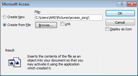 Dodavanje slike iz fajla slike - OLE OBJECT /INSERT OLE OBJECT/