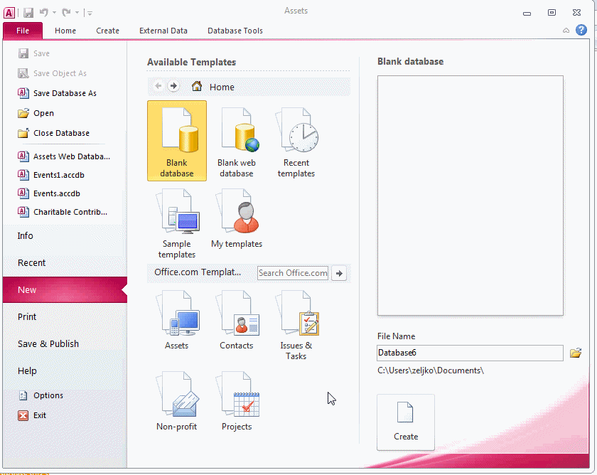 - Na toolbaru klik na Create pa na Table Templates