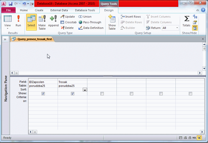 GROUP BY će grupisati sve vrijednosti po IDZaposlen, a pronaći će vrijednost koja se prva pojavila za polje Prevoz /THE FIRST/.