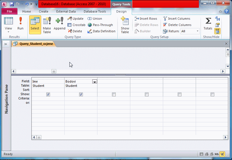 ACCESS - izraz: Ocjena: Switch([Bodovi]>=90;10;[Bodovi]>=80;9;[Bodovi]>=70;8;[Bodovi]>=60;7;[Bodovi]>=50;6;[Bodovi]<50;5)