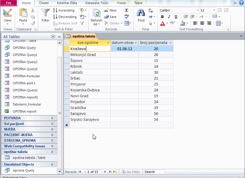 - U datoj tabeli markiramo red ili cijelu tabelu kako bi provjerili pravopis.