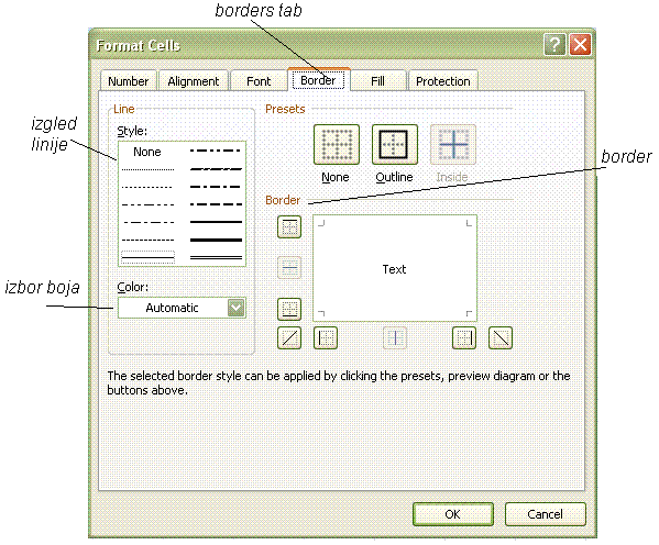 Postavljanje okvira iz FORMAT CELLS dijalog prozor