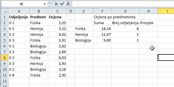 Učenici odjeljenja su ostvarili određene uspjehe u pojedinim predmetima. Izaračunate prosječne vrijednosti