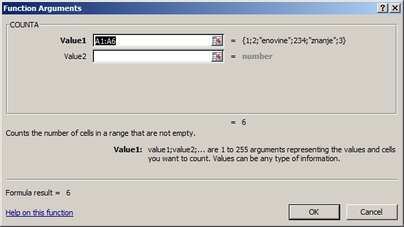 Slika 1. Funkcija brojanje celija sa tekstom /FUNCTION COUNTA/