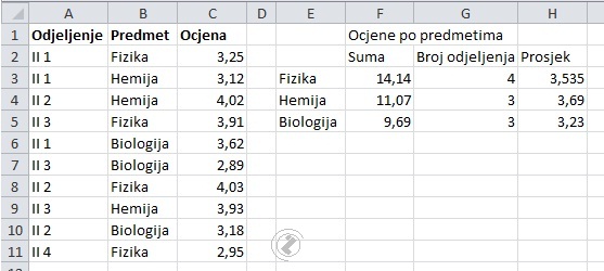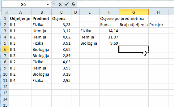 slijedeću animaciju, a za sumu po predmetim (vidi animaciju >>.) a za prosjeke (vidi animaciju