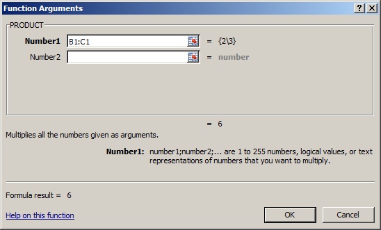 Funkcija PRODUCT izračunava proizvod izabranih članova.
