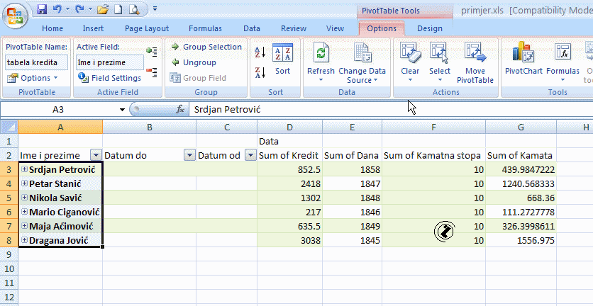 Pivot tabela /PIVOT TABLE/ Brisanje podataka u pivot tabeli