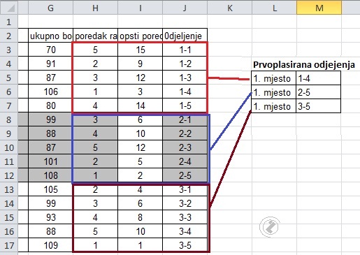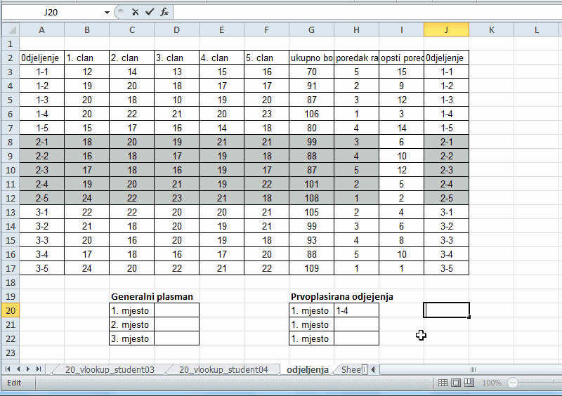 VLOOKUP - Odjeljenja - Prvoplasirana odjeljenja pojedinh razreda