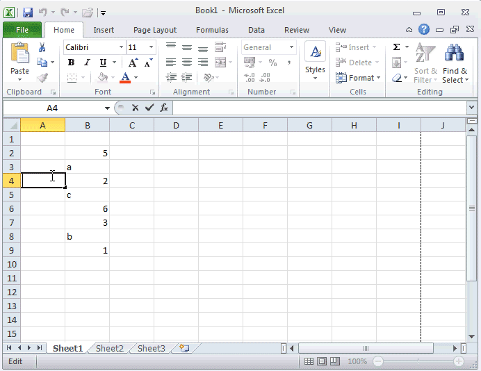 Sortiranje se izvodi iz EDITING grupe u HOME TAB - SORT & FILTER button , - Sort from Z to A opcija iz SORT & FILTER menija.