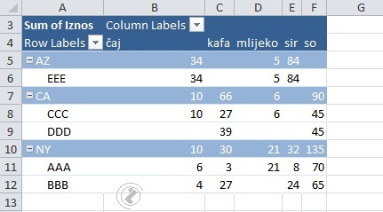 Podaci za kreiranje Pivot tabele 2