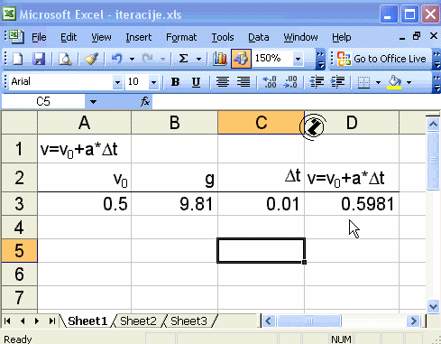 - Vrijednosti v0 i g se samo jednom upisuju i koriste se kao konstante.