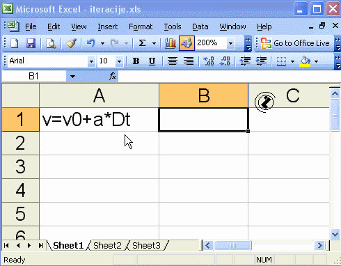 Primjer korištenja EXCEL-a za izračunavanja trenutnih brzina po formuli:
