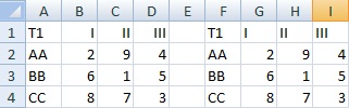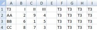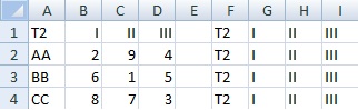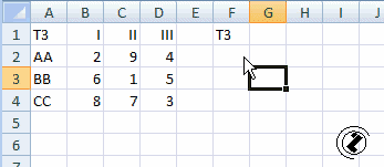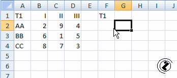 Sadržaj ćelije F1 je =$A1. Markerom popune /MARKER/ se kopira sadržaj odgovarajuće ćelije kolone označene sa $.