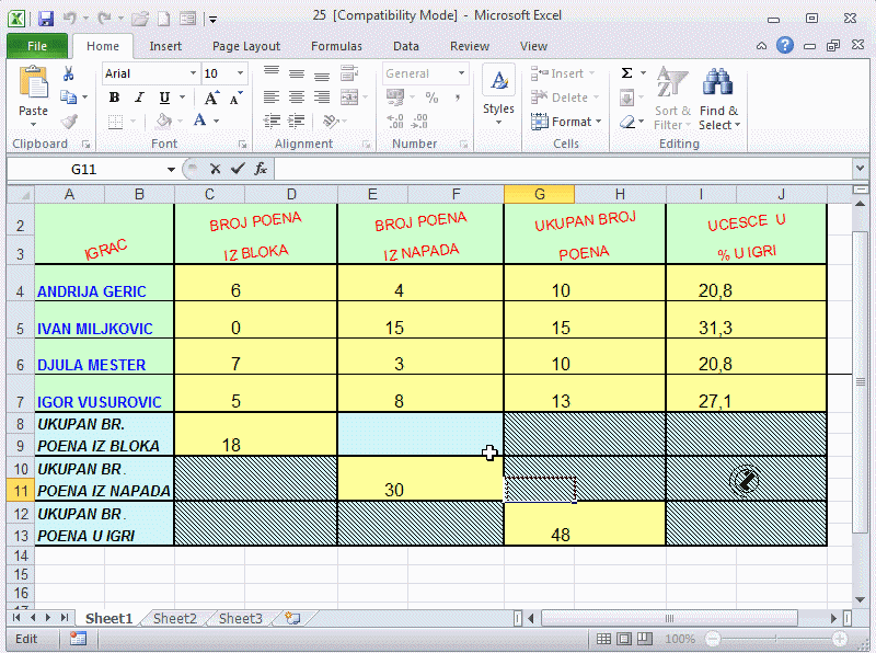 - Označiti grupu ćelija;