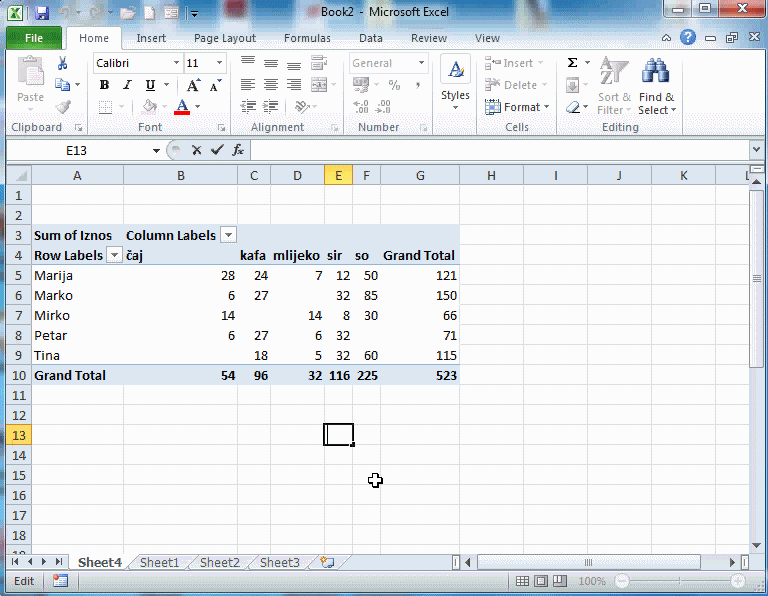 Pivot tabela /PIVOT TABLE/ Brisanje podataka u pivot tabeli