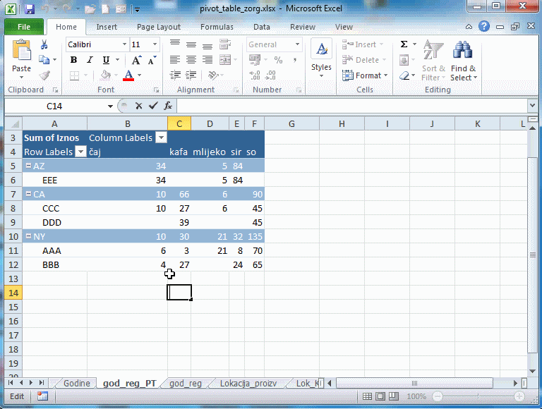 N a p o m e n e: pivot tabele se mogu samo praviti od već postojećih podataka