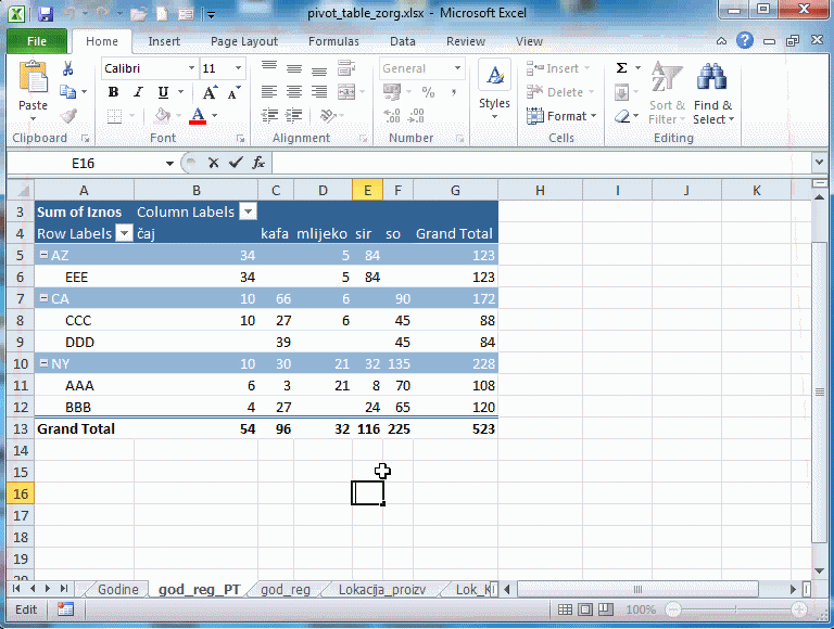 Pivot tabela /PIVOT TABLE/ Postavljanje dugmadi ispred zaglavlja