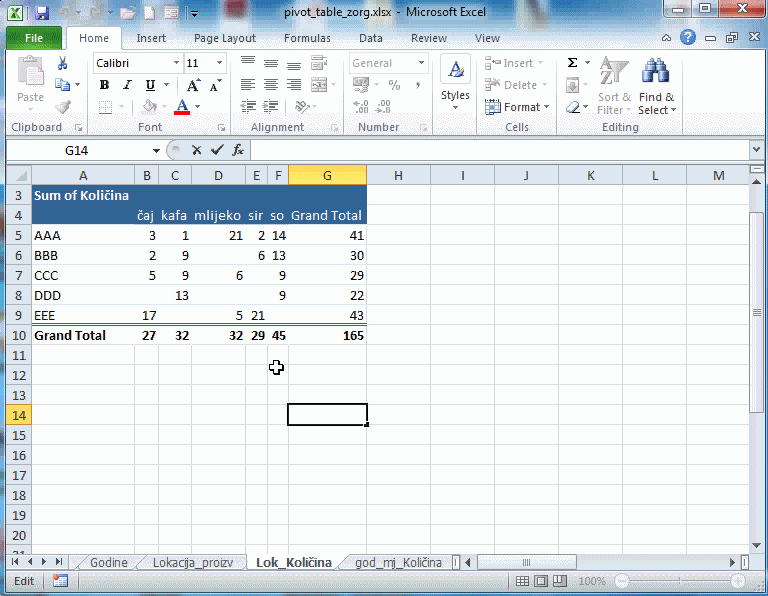 Pivot tabela /PIVOT TABLE/