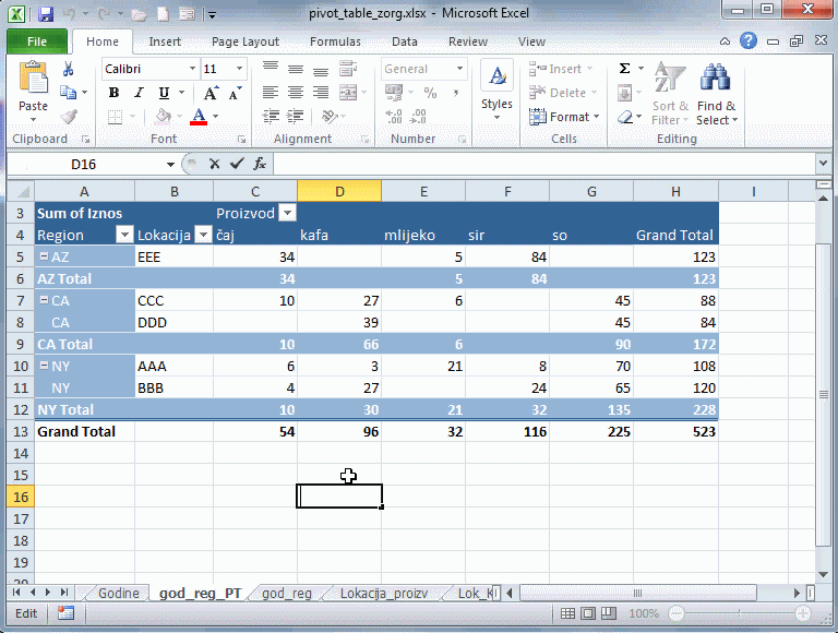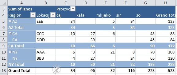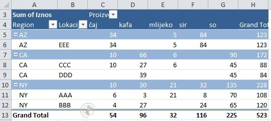 Prikazi pivot tabele /PIVOT TABLE REPORT LAYOUT/