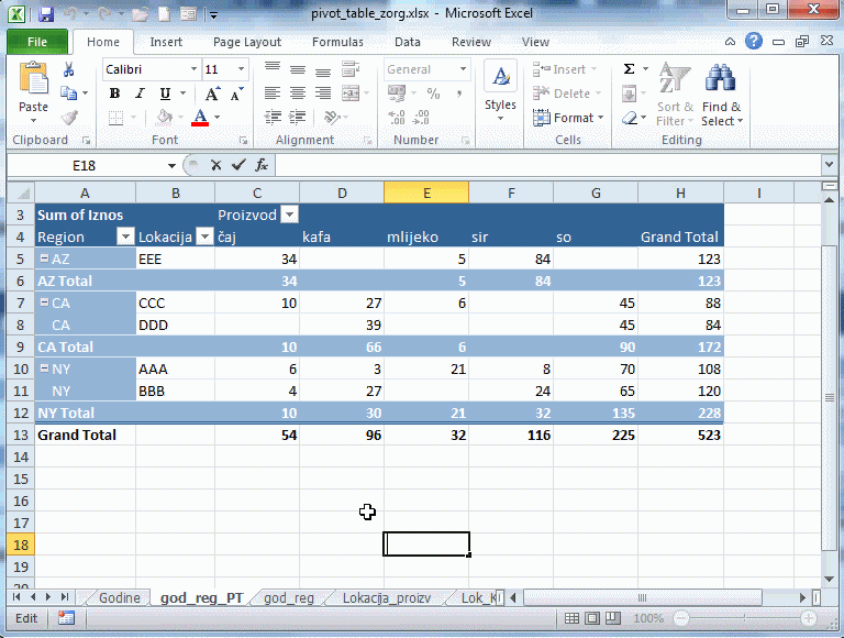 N a p o m e n e: pivot tabele se mogu samo praviti od već postojećih podataka