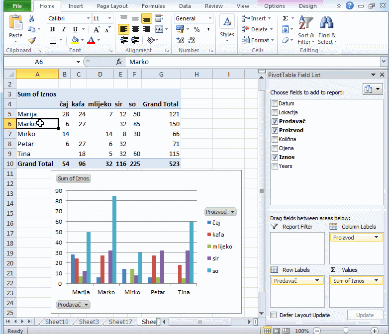 Izdvajanje elemenata PIVOT CHARTS-a