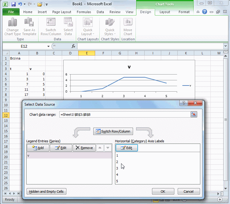Izbor vrijednosti ose, postupak:
