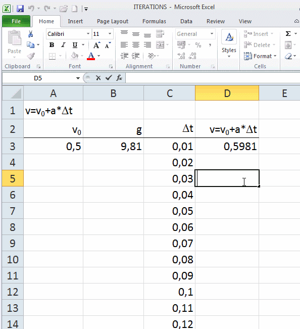 EXCEL - Iteracije /ITERATIONS Vrijednosti brzine v
