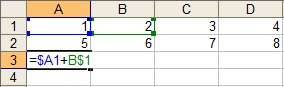 Sadržaj ćelije A3 je =$A1+B$1. Ako se iskopira u ćeliju C4 vrijednost ćelije će biti