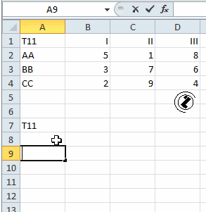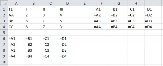 Sadržaj ćelije F1 je =A1. Markerom popune /MARKER/ se kopira sadržaj odgovarajuće ćelije.
