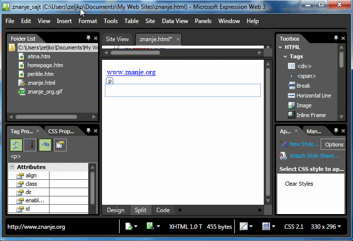 EXPRESSION WEB ima STANDARD liniju alata /STANDARD TOOLBAR/ prikazana je na slijedećoj slici a opis pojedinačnih dugmadi /BUTTONS/ je na dnu dokumenta.