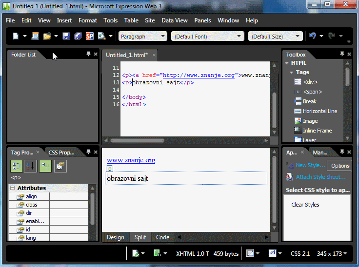 EXPRESSION WEB omogućuje korisniku izbor linije alata /TOOLBAR/. Izbor je iz VIEW menija, TOOLBAR opcija i izabrati željenu liniju alata /TOOLBAR/.