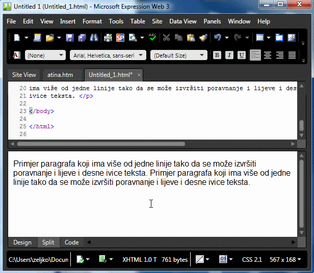 Poravnanje teksta - FORMAT linija alata /ALIGNMENT - FORMATTING TOOLBAR/