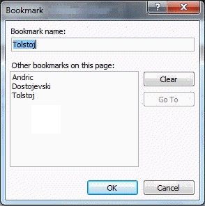 Ime odredište /BOOKMARK NAME/ u EXPRESSION WEB aplikacije se mijanja u BOOKMARK dijalog prozoru.