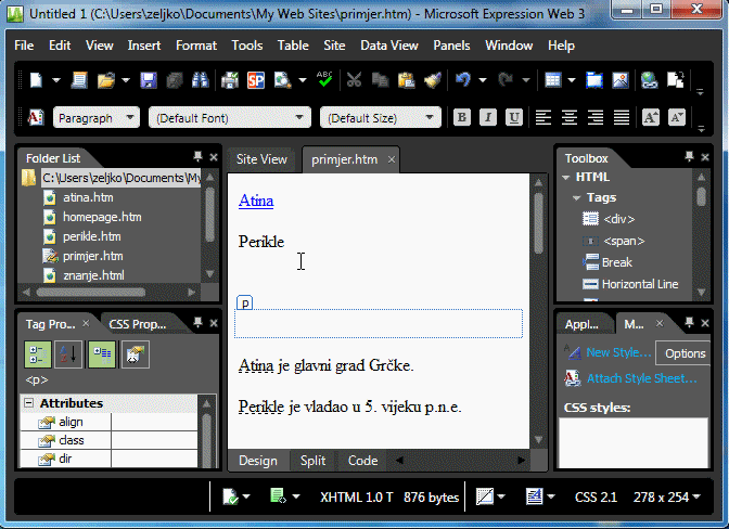 2. Kreirati hiperlink PERIKLE na odredište PERIKLE (vidi animaciju).