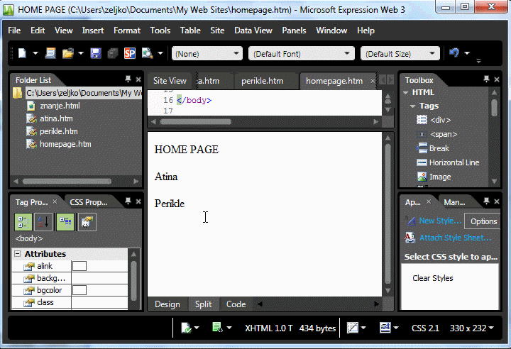 1. Krerirati fajl (u ovom slučaju Atina.htm)