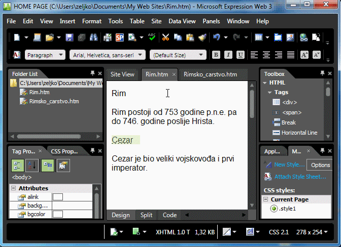 2. Kreirati hiperlink u Rimsko_carstvo.htm na odredište Cezar u fajlu Rim.htm