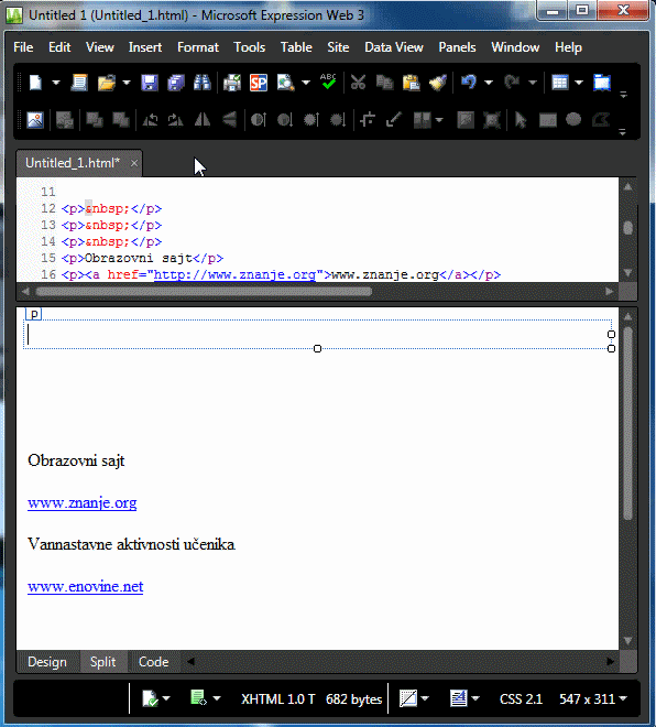 7. EXPRESSION WEB pozicionira kursor na taženi tekst.