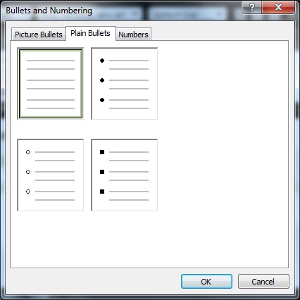 Kreiranje bulita /BULLETS/ se izvodi iz FORMAT menija, BULLETS & NUMBERING opcija, BULLETS TAB u dijalog prozoru.