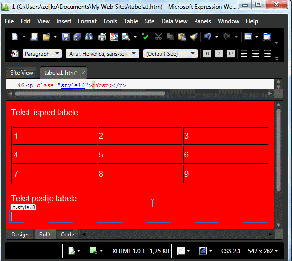 EXPRESSION WEB omogućuje da boju tabele /TABLE BACKGROUND/ bira korisnik. Klikom desne tipke miša na tabelu bira se TABLE PROPRERTIES opicja i postavlja BACKGROUND.