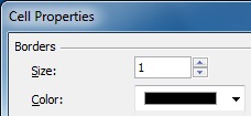 Slika 8. BORDER SIZE & COLOR polja CELL PROPERTIES dijalog prozor