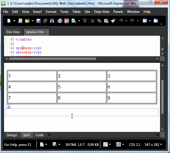 Brisanje sadržaja ćelije tabele - EDIT meni /DELETE TABLE CELLS CONTENT - EDIT MENU/