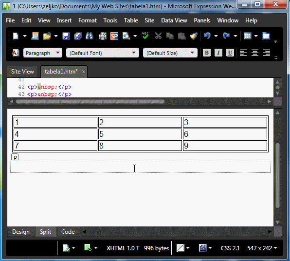 Korisnik može da bira visinu tabele /TABLE HEIGHT/. Izbor vrijednosti se izvodi iz TABLE PROPERTIES dijalog prozora. Izbor razmaka ne zavisi od mjesta otvaranja TABLE PROPERTIES dijalog prozora (TABLE meni, meni prečice /SHORTCUT meni).